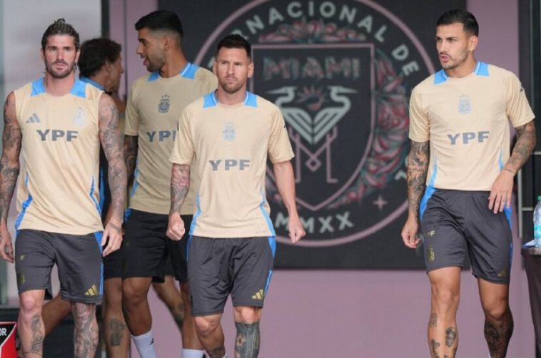 Es que la idea de Lionel Scaloni era entrenar en una de las canchas y practicar fútbol, pero hubo un fuerte temporal en Miami, por lo que los campeones del mundo tuvieron que entrenarse por la tarde en el interior del hotel, antes de viajar a Washington para el amistoso.
