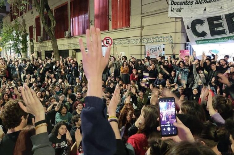 Los estudiantes de la Facultad de Psicología y Filosofía y Letras decidieron tomar las instituciones hasta el viernes. En estos dos casos, los estudiantes se van a sumar a los cortes de calle y movilización hacia Plaza de Mayo el miércoles a las 18.