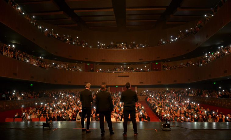“Buenas noches San Luis. Es un placer estar en este hermoso teatro. Estamos muy contentos de continuar con esta herencia de vida; cada una de nuestras canciones forman parte de nuestra historia y de nuestros padres, del querido ´Trio San Javier´”, expresó uno de los cantantes ante un público eufórico que ovacionaba sus nombres.