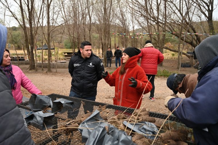 Yvonne Scarpati, directora Provincial de Viveros, comentó: “Estamos haciendo un operativo de envasado de fresnos, estos vinieron de Chaco el año pasado y ya tuvieron una temporada de crecimiento. Ahora estamos haciendo el envasado con tierra del Dique La Estrechura, una tierra muy buena que le aporta grandes nutrientes a la planta”.