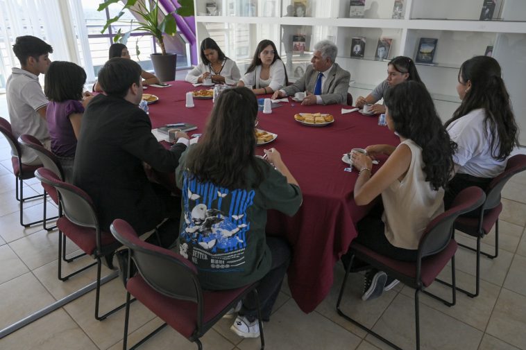 “Es una política pública que queremos implementar a partir de la charla que tuvimos con todos estos chicos. La Beca al Mérito la van a recibir los tres mejores promedios académicos que egresen de nuestras escuelas secundarias, de toda la provincia, de todas las modalidades de gestión pública y de gestión privada. Va a contribuir a que puedan costear parte de los gastos universitarios de cada uno de estos jóvenes académicamente destacados”, dijo el Primer mandatario.