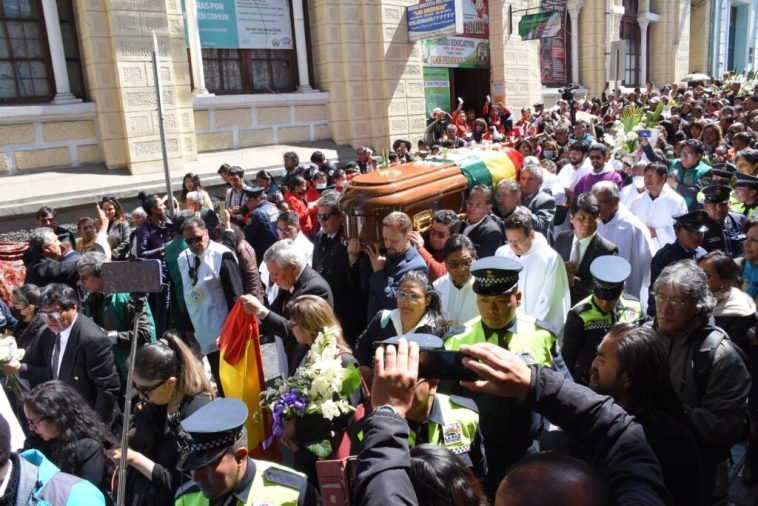 En medio de pañuelos blancos, entre llantos, oraciones, cantos y agradecimientos fueron sepultados los restos del padre Eduardo Pérez Iribarne, al mediodía de ayer, en el mausoleo de la Compañía de Jesús, en el Cementerio General de la urbe paceña, cercano a la tumba de Carlos Palenque y el padre Luis Espinal.
