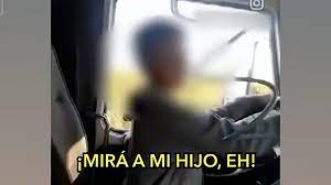 “Mirá a mi hijo. Ah, estoy re contento, mi hijo está manejando. Mirá, maneja mi hijo, ¿Qué se piensan?”, decía el hombre, que alentaba al pequeño, le daba indicaciones y manifestaba su felicidad por ver a su hijo manejar el camión, un Scania 113H.