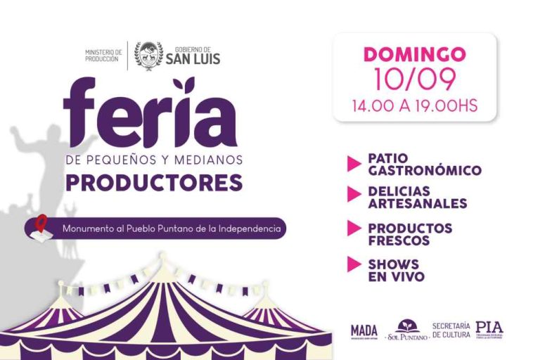 El próximo domingo 10 de septiembre una nueva edición particular de la Feria de Pequeños y Medianos Productores tendrá lugar en el Monumento al Pueblo Puntano de Las Chacras. El evento que aglomera lo más destacado de la producción local se podrá disfrutar desde las 14:00 hasta las 19:00 y contará con aproximadamente 100 expositores.