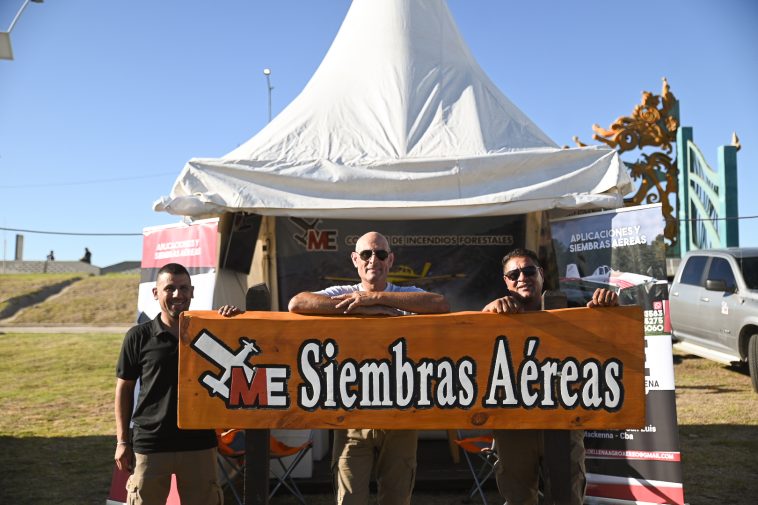 Una de las 25 empresas que se encuentran en el sector Agro de la Feria Industrial es la de Marcelo Alberto Elena, encargado de una empresa de siembra, fumigación y combate de incendios forestales con medios aéreos. Con base operativa en Nueva Escocia, brindan servicios a productores de toda la provincia.
