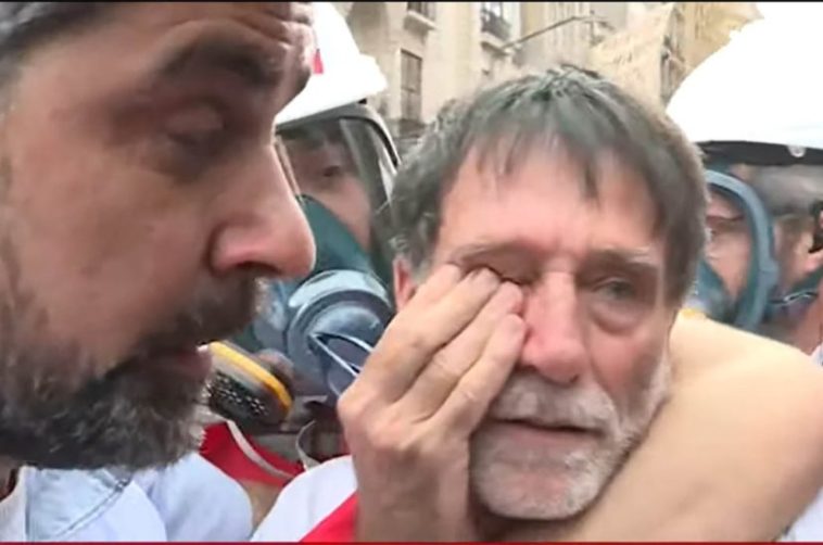 “Me agarraron para llevarme preso”, indicó el padre Paco frente a la consulta de los noteros, mientras se recuperaba de los gases. También dijo que lo habían “esposado”, y que no sabía por qué lo habían liberado.