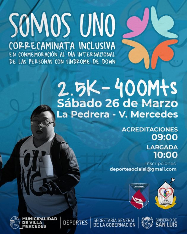 Todos los 21 de marzo se conmemora el Día Mundial del Síndrome de Down y, por tal motivo, la Provincia realiza diferentes actividades; desde hace dos años, se hace una correcaminata que busca la inclusión, a través de la participación de toda la sociedad.