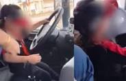 En las imágenes se puede ver como el nene recibe instrucciones para acelerar y pasar los frenos del camión, con el riesgo que esto representa para ellos mismos y para terceros. “Esto va pal’ Facebook”, dice el hombre que registró la escena, a la vez que le daban indicaciones de mantener el vehículo derecho.