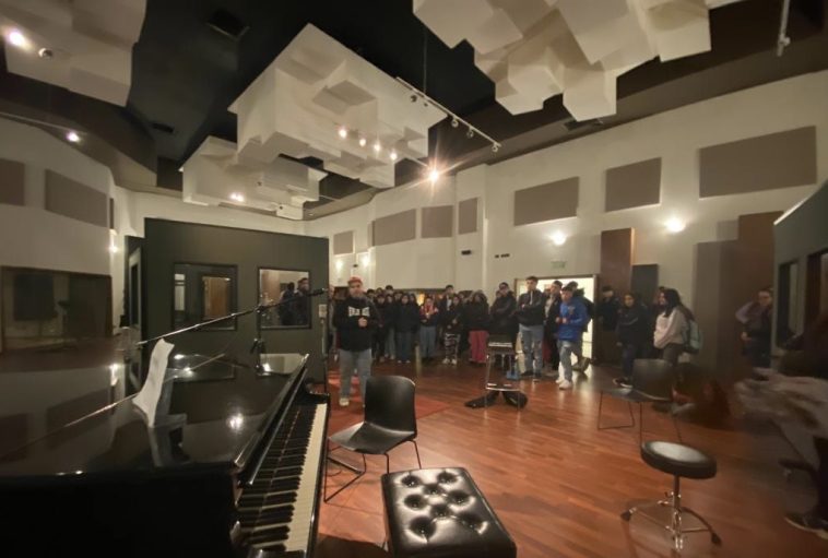 Los técnicos y profesionales mostraron a la institución, las salas de grabación, donde escucharon soñar el piano y tuvieron la oportunidad de presenciar el ensayo del “Ensamble”, grupo integrado por jóvenes músicos de la Escuela Generativa Félix Máximo María que funciona en el Molino Fénix. Además en otro de los estudios se encontraba grabando su EP, Nahuel Pua con su instrumento llamado “Handpan”. El artista se suma a la visita y tocó un tema para ellos.