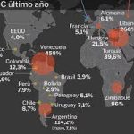 La Argentina ocupó en mayo el tercer puesto en el ranking mundial de inflación anual