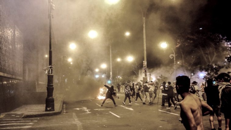Los disturbios comenzaron en la tarde mientras Castillo sostenía una reunión con los líderes opositores que controlan el Congreso y cientos de personas protestaban en los alrededores del edificio legislativo y otros puntos de Lima.